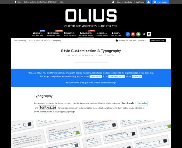 The premium version of the theme provides extensive typography options, allowing you to customize font-family, font-color, and font-sizes for multiple areas such as links, topbar, menus, footers, sidebars, etc. Every detail can be adjusted to create a cohesive and visually appealing design.